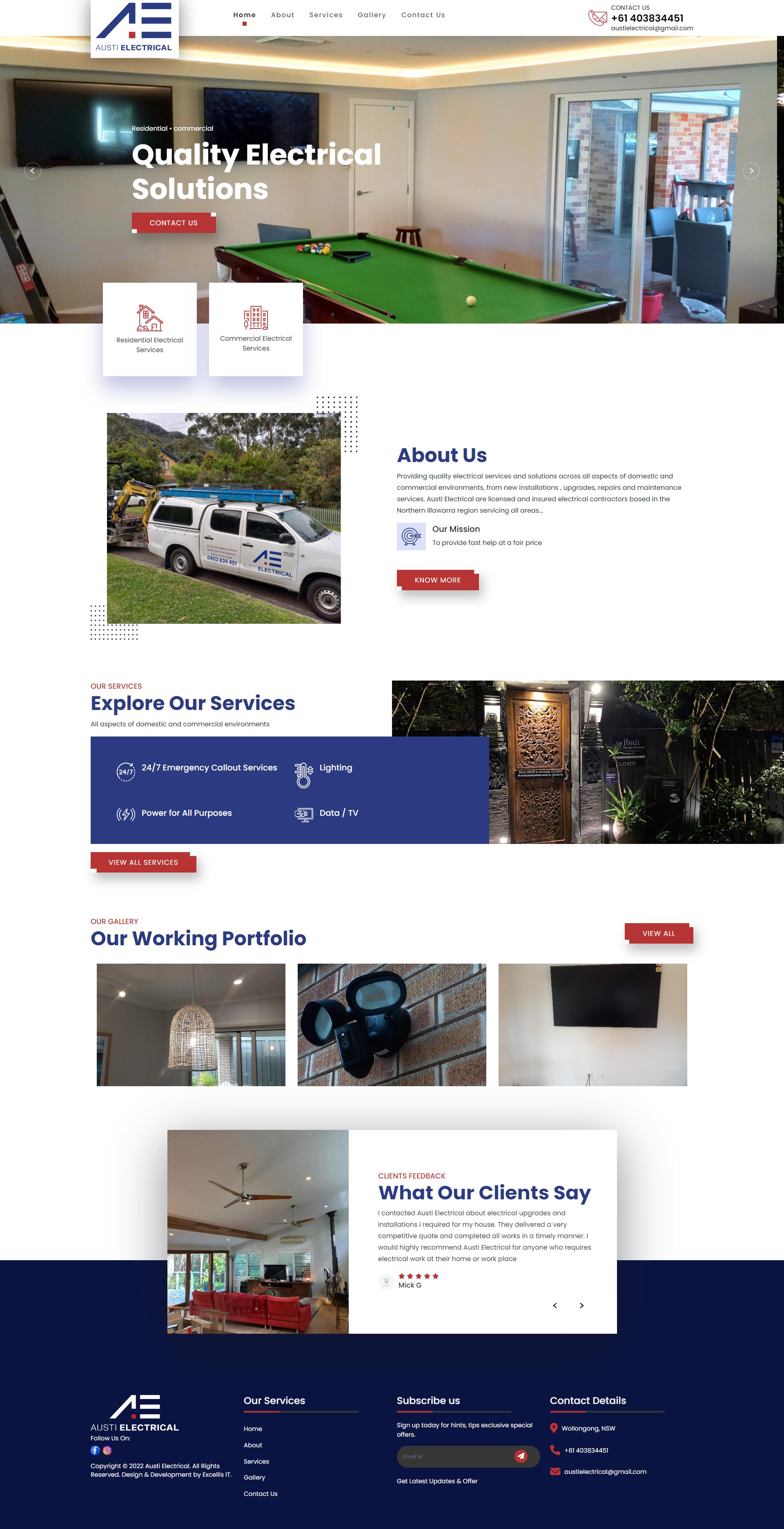 Austi Electrical delivers high-quality electrical repair and installation throughout Canberra, Australia. When designing their website, we went for a bold and straightforward style, clearly conveying their services' facets to prospective customers. Our simple user interface brings a lot of customers to their business.
