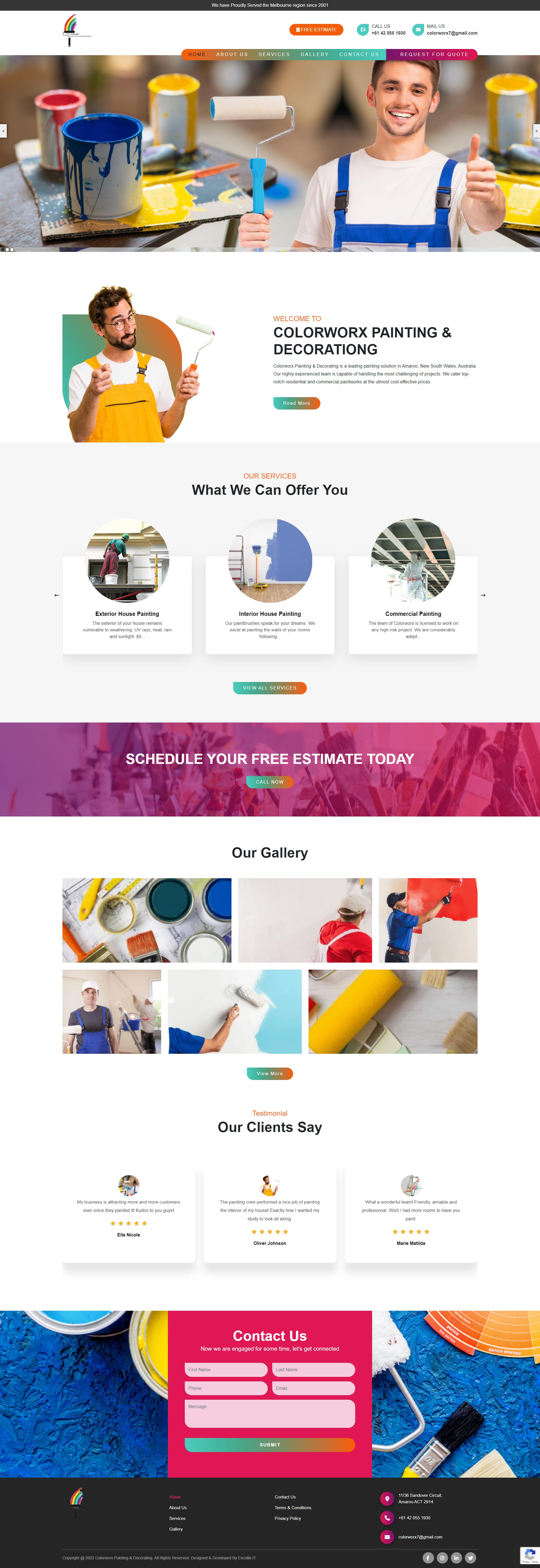 Colorworx painting provides high-quality painting solutions in and around Amaroo, Australia. We provided them with a colourful website that can catch the customers' eyes. Since we designed their website, they have enjoyed a better conversion rate as more and more viewers are hiring their services. We included their services' categories in great detail, showcasing all their expertise.