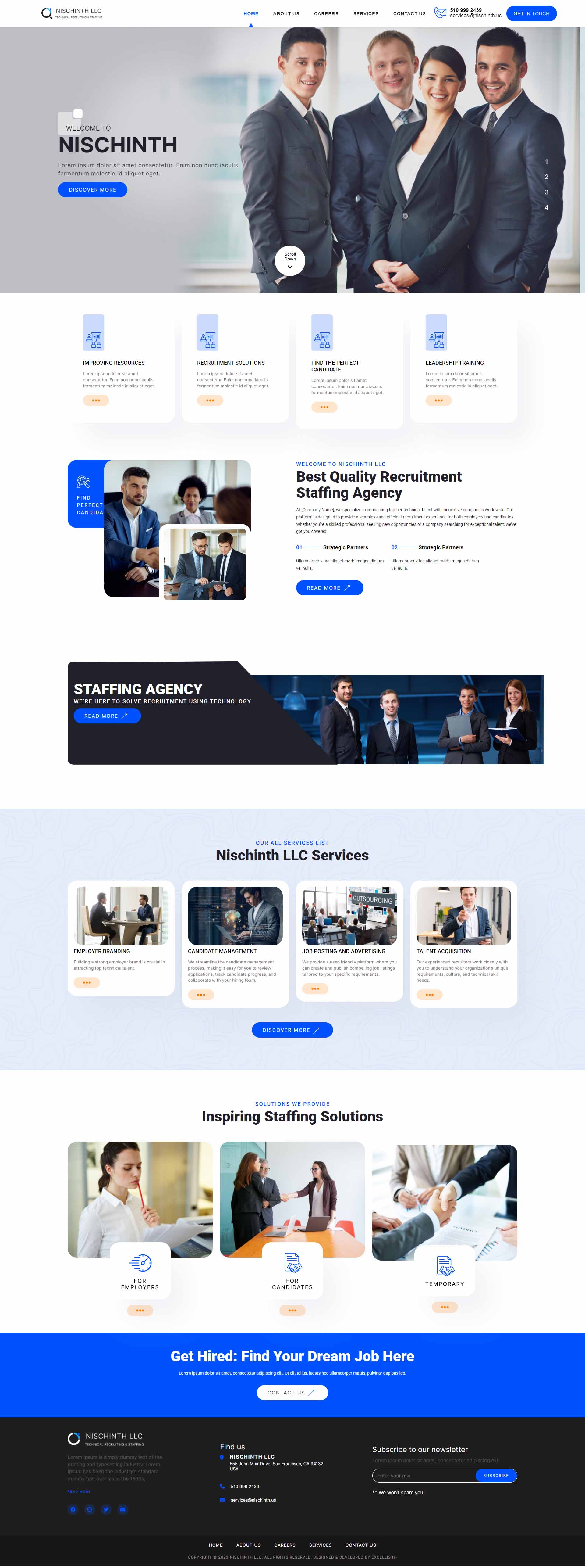 Nischinth LLC is a technical recruiting and staffing agency based out of the USA. Just like the client is diligently offering the best quality staffing and recruitment, we provided them with the appropriate website to showcase their expertise. We curated a platform that helps the agency to provide a seamless and efficient recruitment experience for both employers and candidates.