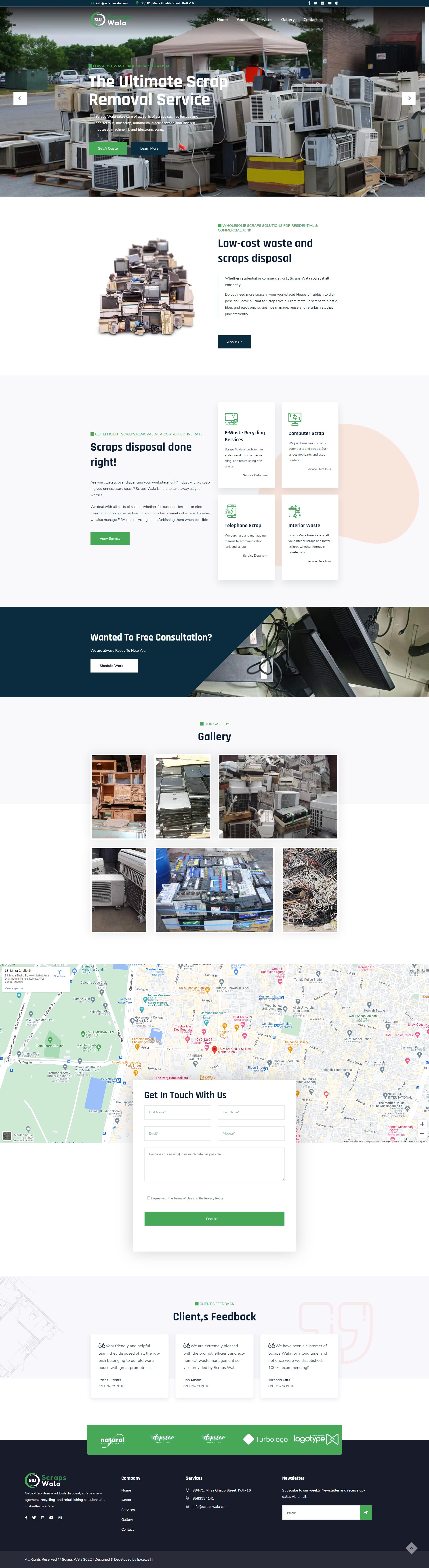 Based in Mirza Ghalib Street, Kolkata, Scrapswala is your one-stop, cost-effective waste disposal, composting and recycling solution. As we had to design a single-page website for them, we attempted to present a brief but definitive glimpse of all their services within the limited space. The web page is written in clear and user-friendly language so that their customers' viewing and reading experience remains seamless.